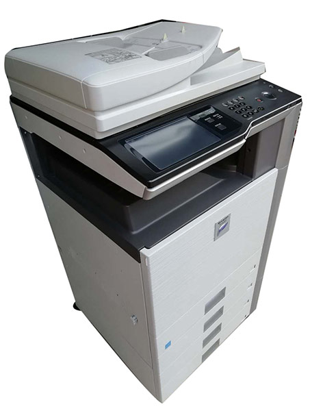 MX453N A3幢面, 原裝進口機器,自動進稿, 雙面自動打印,復印, 網(wǎng)絡打印, 彩色掃描, 縮放比例25%-400%,身份證復復印功能,每分鐘45張, 操作簡單, 故障率低特別適合工廠, 辦公室, 房地產(chǎn)企業(yè), 學校, 政府單位每月印量十萬以內的用戶.